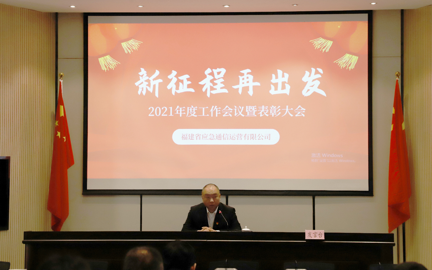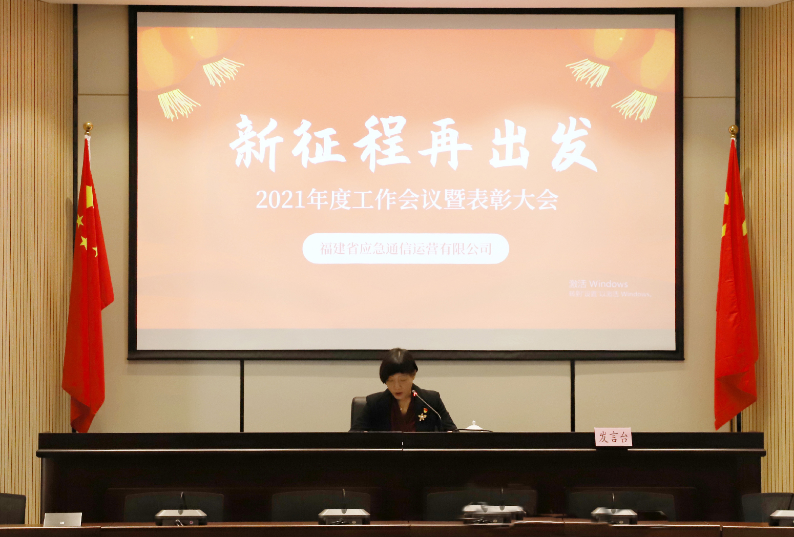 1月26日,福建省应急通信运营有限公司召开2021年年度工作会暨表彰大会。会议总结了公司2020年度的工作成效,表彰了先进集体与个人,以及做出重大贡献的项目团队,并对2021年经营管理工作进行部署。公司党支部书记高元荣、董事长张毅、总经理陈雯珊、副总经理赵嵘、许明及全体干部员工参会。